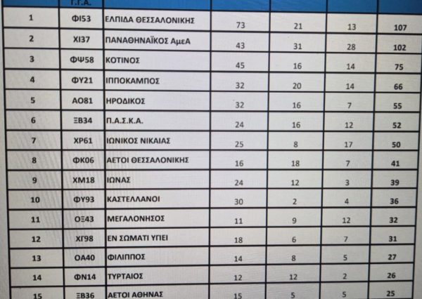 Η πρώτη τριάδα της φετινής Γενικής Βαθμολογίας μεταξύ 56 αθλητικών σωματείων