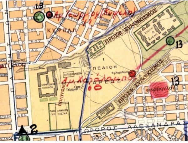 Για αρκετές δεκαετίες το ακριβές «πράσινο» σημείο μέσα στο Πεδίον του Άρεως ήταν «ομιχλώδες» ωστόσο μια σειρά από χάρτες και σπάνιες φωτογραφίες μας…οδήγησαν στο ακριβές μέρος.