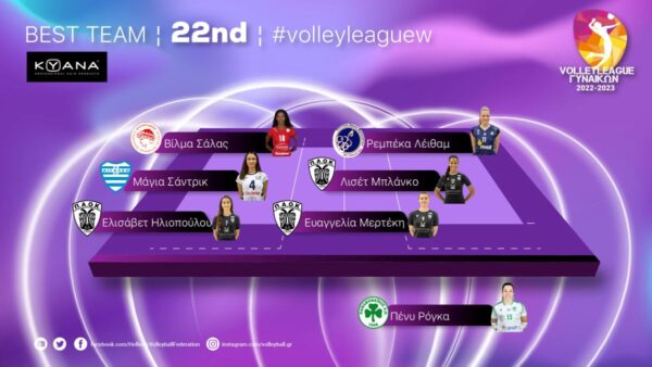 07.04.2023 Βόλεϊ Γυναικών Η Ρόγκα στην καλύτερη επτάδα Η λίμπερο του Παναθηναϊκού Πένυ Ρόγκα βρίσκεται στην καλύτερη ομάδα της 22ης αγωνιστικής.