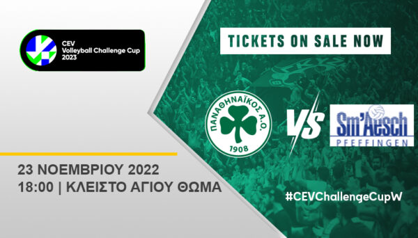 20.11.2022 Βόλεϊ Γυναικών Τα εισιτήρια για τον Ευρωπαϊκό αγώνα του βόλεϊ γυναικών στο Μαρούσι! Το γυναικείο τμήμα βόλεϊ του Παναθηναϊκού ξεκινάει την ευρωπαϊκή του πορεία, την Τετάρτη 23 Νοεμβρίου στις 18:00 στο κλειστό του Αγίου Θωμά.