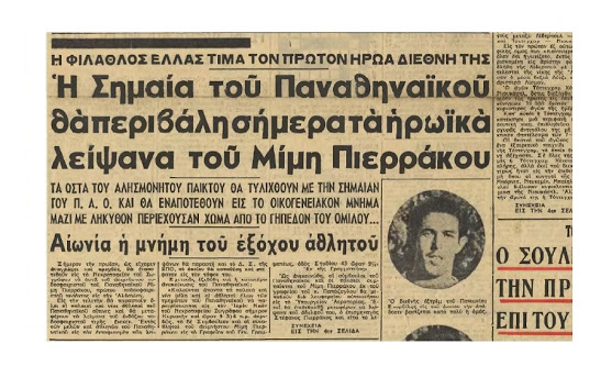 Σαν σήμερα σκοτώθηκε ο ποδοσφαιριστής του Παναθηναϊκού Μίμης Πιερράκος και ο Σύλλογος δεν τον λησμονεί.