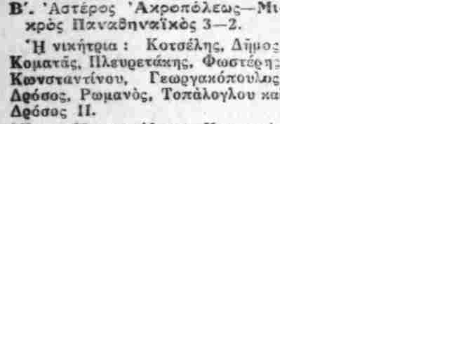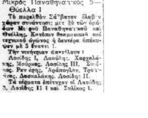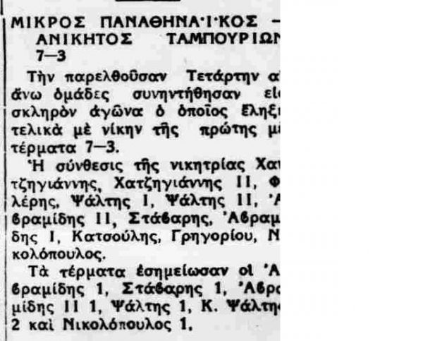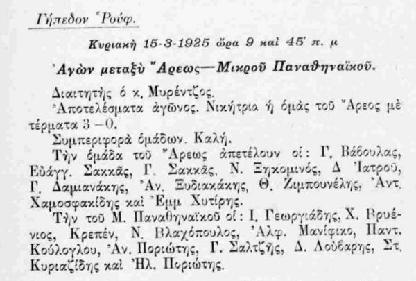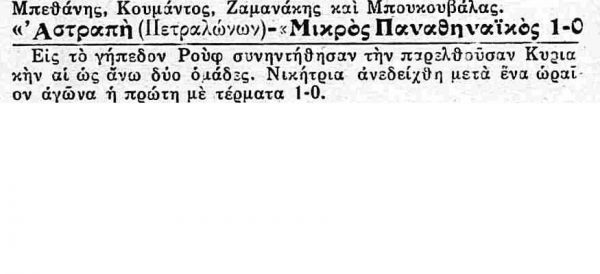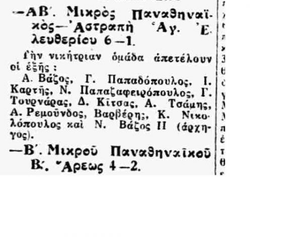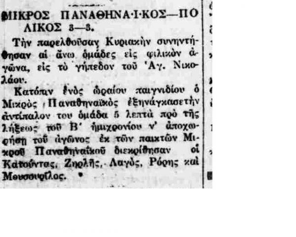 Για την ιστορία, οι πρώτοι «μικροί λεβέντες με καρδιά» της ομάδας σε αυτό το ματς ήταν οι Ιωάννης Γεωργιάδης, Χ. Βρυένιος, Κρεπέν (γόνος γαλλικής οικογένειας), Νίκος Βλαχόπουλος (φέρεται πως ήταν συγγενής των αδερφών Βλαχοπούλου, που έπαιξαν στη με γάλη ομάδα του Παναθηναϊκού την ίδια περίοδο), Αλφρέδος Μανίφικο (γόνος ιταλικής οικογένειας), Παντελής Κούλογλου, Ανδρέας Ποριώτης, Γ. Σαλτζής, Δ. Λούβαρης, Στέλιος Κυριαζίδης και Ηλίας Ποριώτης.