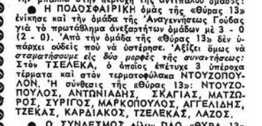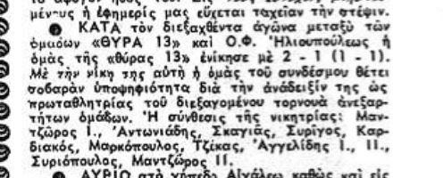 Το 1969 η Θύρα 13 μετρούσε περίπου τρία χρόνια ζωής και η ένδοξη Θύρα του Συλλόγου είχει τη δική της ποδοσφαιρική ομάδα που συμμετείχε στο Ανεξάρτητο πρωτάθλημα.