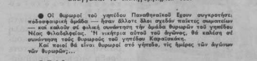 Αξιοσημείωτη ήταν η πρόσκληση που είχε κάνει ο Παναθηναϊκός Θυρωρών προς την ομάδα των Θυρωρών της Νέας Φιλαδέλφειας.