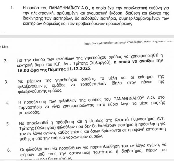 Ο Παναθηναϊκός Αθλητικός Όμιλος ανακοινώνει τα μέτρα του σημερινού αγώνα με τον Ερυθρό Αστέρα στις 6μ.μ. στο κλειστό του Χολαργού για το Eurocup μπάσκετ γυναικών.