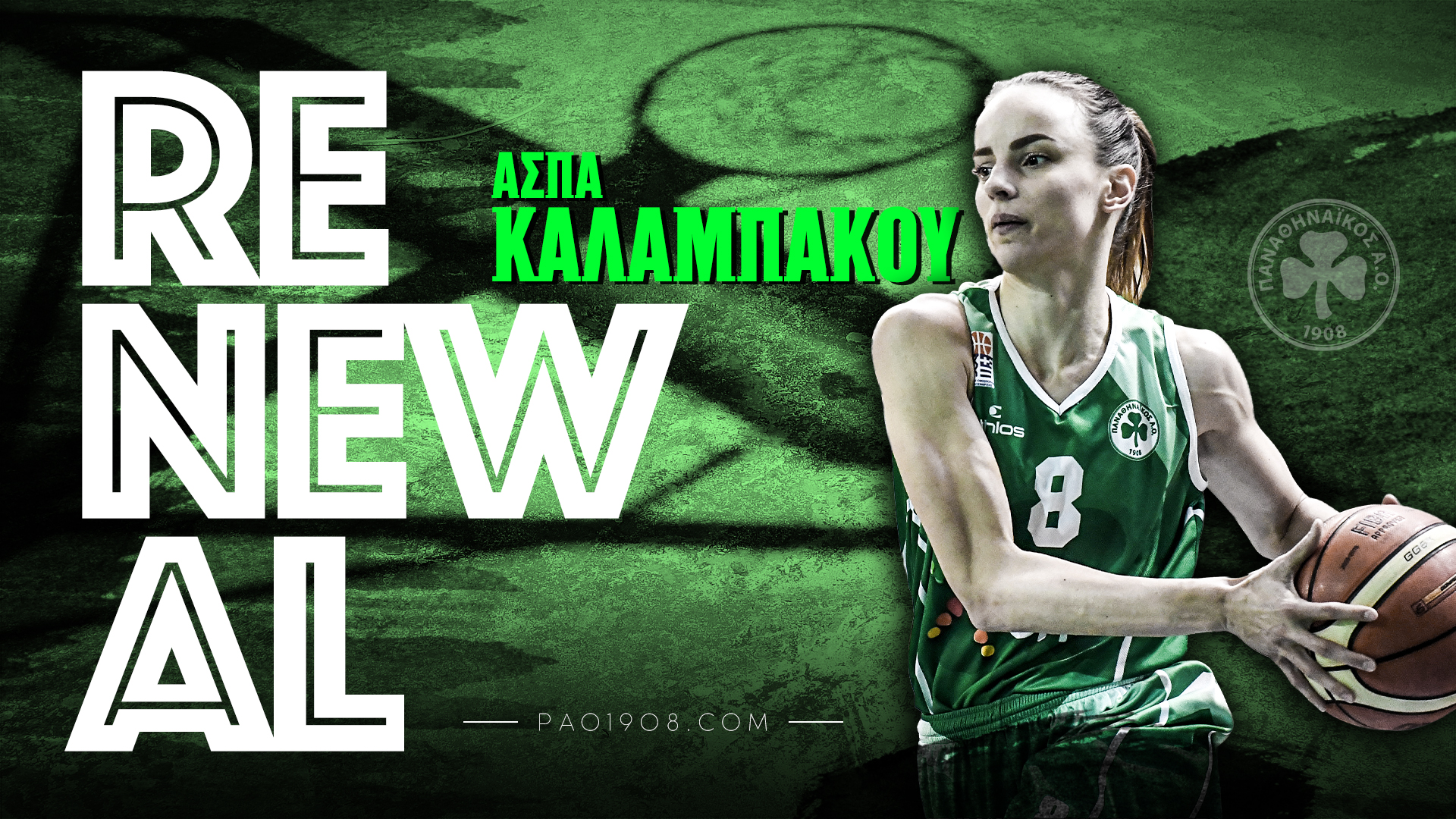 Ο Παναθηναϊκός Αθλητικός Όμιλος ανακοινώνει την ανανέωση της συνεργασίας του με την Ασπασία Καλαμπάκου στο γυναικείο τμήμα μπάσκετ για την σεζόν 2020-2021.
