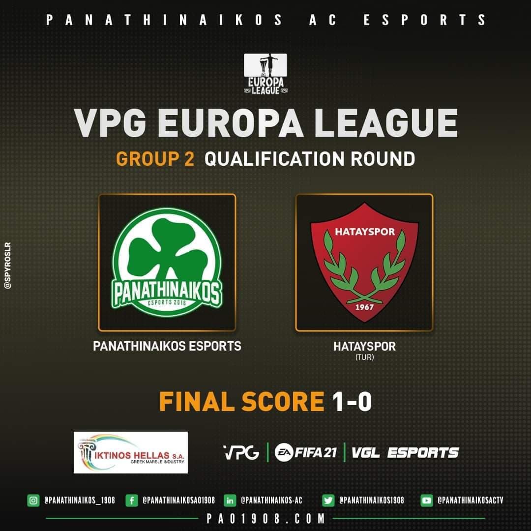 Μεγάλη επιτυχία στο ευρωπαϊκό πρωτάθλημα ηλεκτρονικού ποδοσφαίρου, υπέταξε την τουρκική Hatayspor (1-0) και έκανε βήμα πρόκρισης ο Παναθηναϊκός. Το "τριφύλλι" είχε από την αρχή τον πλήρη έλεγχο του αγώνα, απειλώντας διαδοχικά.