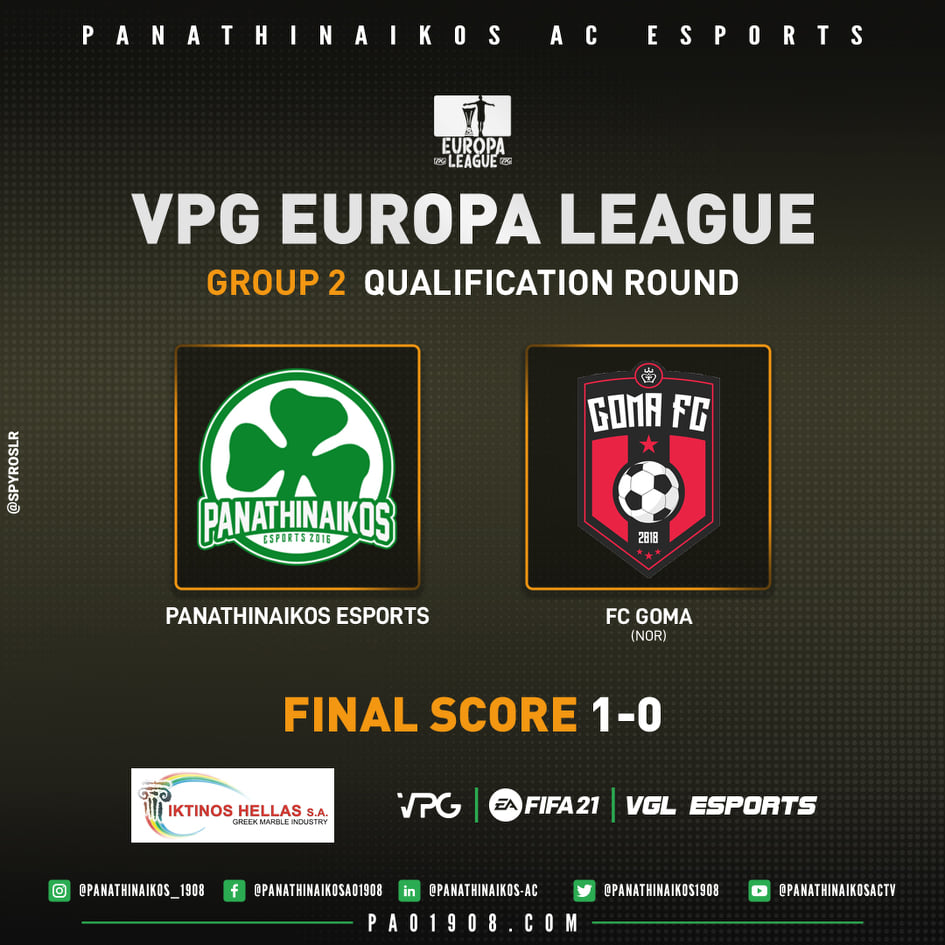 Προκρίθηκε ως πρωτοπόρος του ομίλου του στις "32" καλύτερες ομάδες του VPG Europa League ο Παναθηναϊκός.