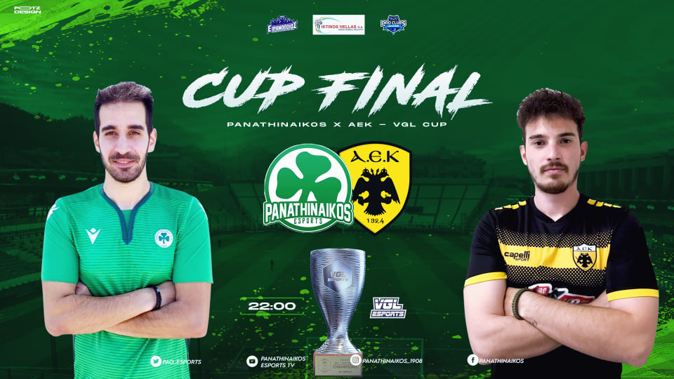 Σήμερα ο τελικός του Κυπέλλου Ελλάδας FIFA ανάμεσα στον Παναθηναϊκό και την ΑΕΚ. Η αναμέτρηση θα μεταδοθεί στις 22:00 απευθείας από το κανάλι της διοργανώτριας VGL e-Sports στο YouTube.