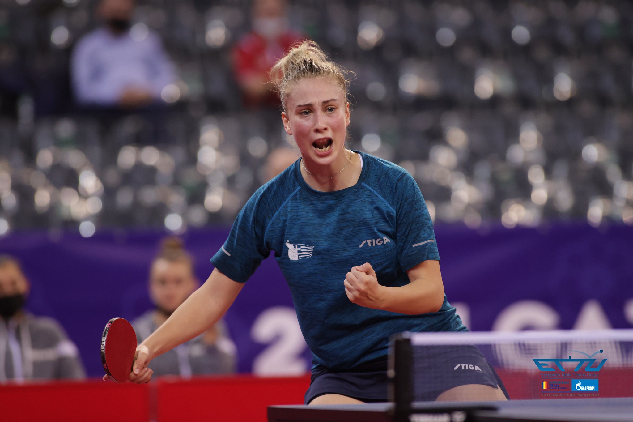 Πέτυχε τον βασικό της στόχο με εμφατικό τρόπο μάλιστα, καθώς στον καθοριστικό αγώνα για τη 2η θέση στο 8ο γκρουπ κατέβαλλε τη Ρίκε Σκέιτετ από τη Νορβηγία (Νο 39) με 4-0 σετ. Η Σκανδιναβή έχει αμυντικό στυλ παιχνιδιού και η πρωταθλήτριά μας παρουσιάστηκε και δυνατή και πολύ καλά διαβασμένη. Στο τελικό 4-0 αντιμετώπισε δυσκολίες μόνο στο 1ο σετ ουσιαστικά. Εκεί έχανε 6-8 και υπερίσχυσε με πέντε σερί πόντους (11-8, 11-5, 11-7, 11-1). Ο αγώνας μεταδόθηκε ζωντανά στο ίντερνετ από το τραπέζι 1.