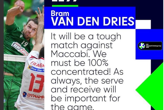 Σε δήλωση του για τον αγώνα ο Βαν Ντεν Ντρις σχετικά με το ματς τόνισε «Θεωρώ πως έχουμε το κίνητρο για ένα καλό αποτέλεσμα. Πρόκειται για μια διαφορετική διοργάνωση και ο στόχος είναι να προχωρήσουμε όσο μπορούμε. Δεν υποτιμάμε τον αντίπαλο γιατί είναι καλή ομάδα. Θα είναι ένα δύσκολο παιχνίδι και πρέπει να είμαστε 100% συγκεντρωμένοι. Θεωρώ ότι είμαστε έτοιμοι. Όπως πάντα το σέρβις και η υποδοχή θα παίξουν σημαντικό ρόλο».