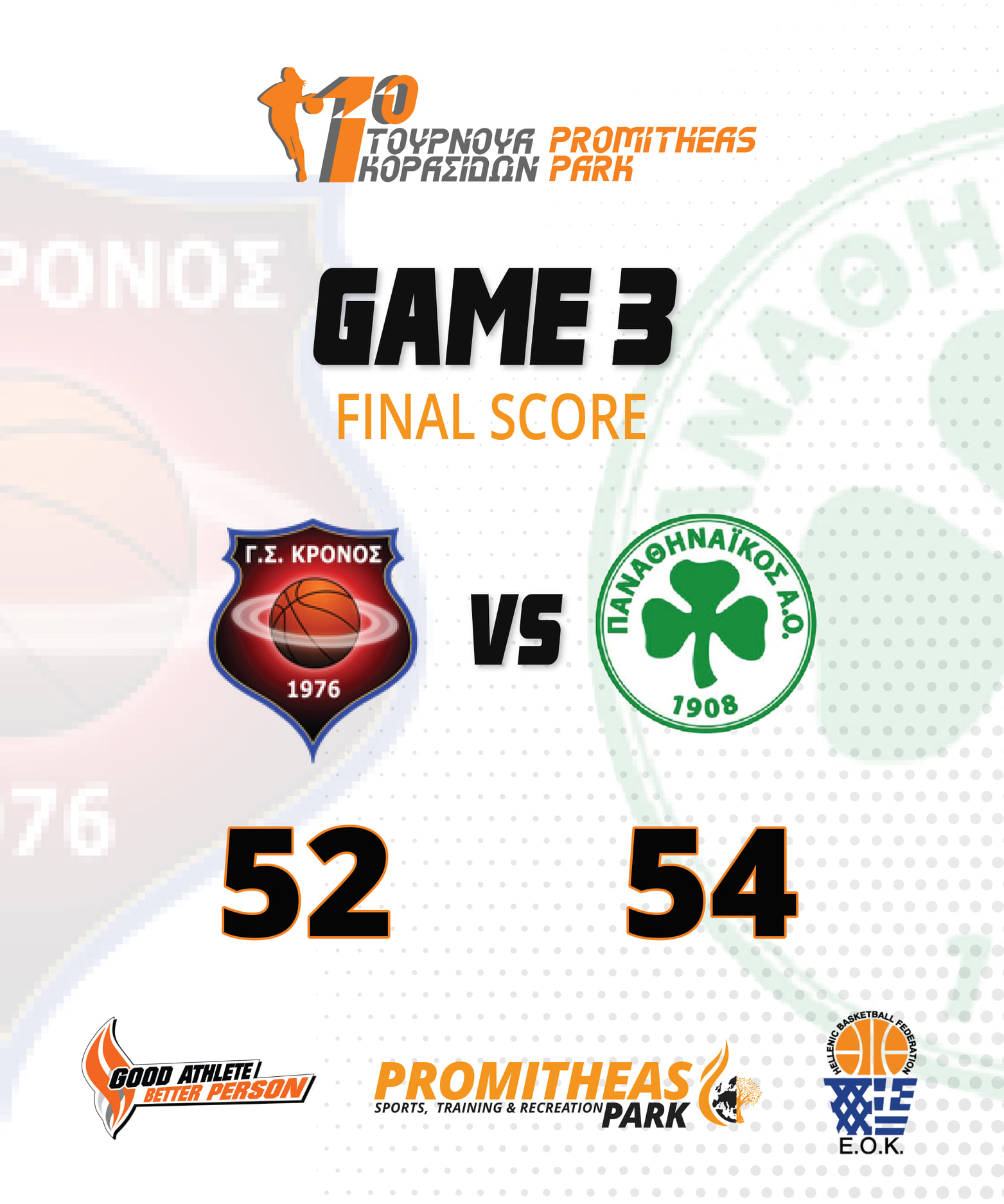 Οι «πράσινες» έκαναν το δύο στα δύο έπειτα από τη νίκη επί του Ανδρογέα με 60-53 , καθώς επικράτησαν και του Κρόνου Αγίου Δημητρίου με 54-52.