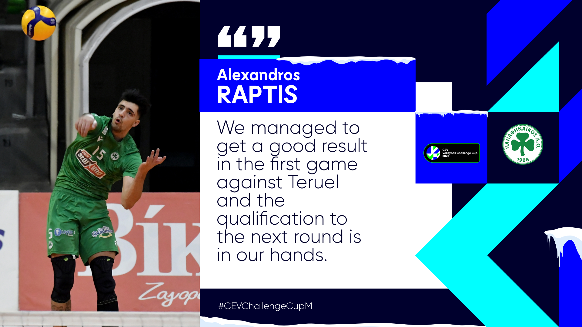 Ο Παναθηναϊκός δοκιμάζεται εκτός έδρας με την Τερουέλ την Τετάρτη 9 Φεβρουαρίου (9μ.μ. Cosmote 7) και ο Αλέξανδρος Ράπτης στέλνει το σύνθημα πρόκρισης.