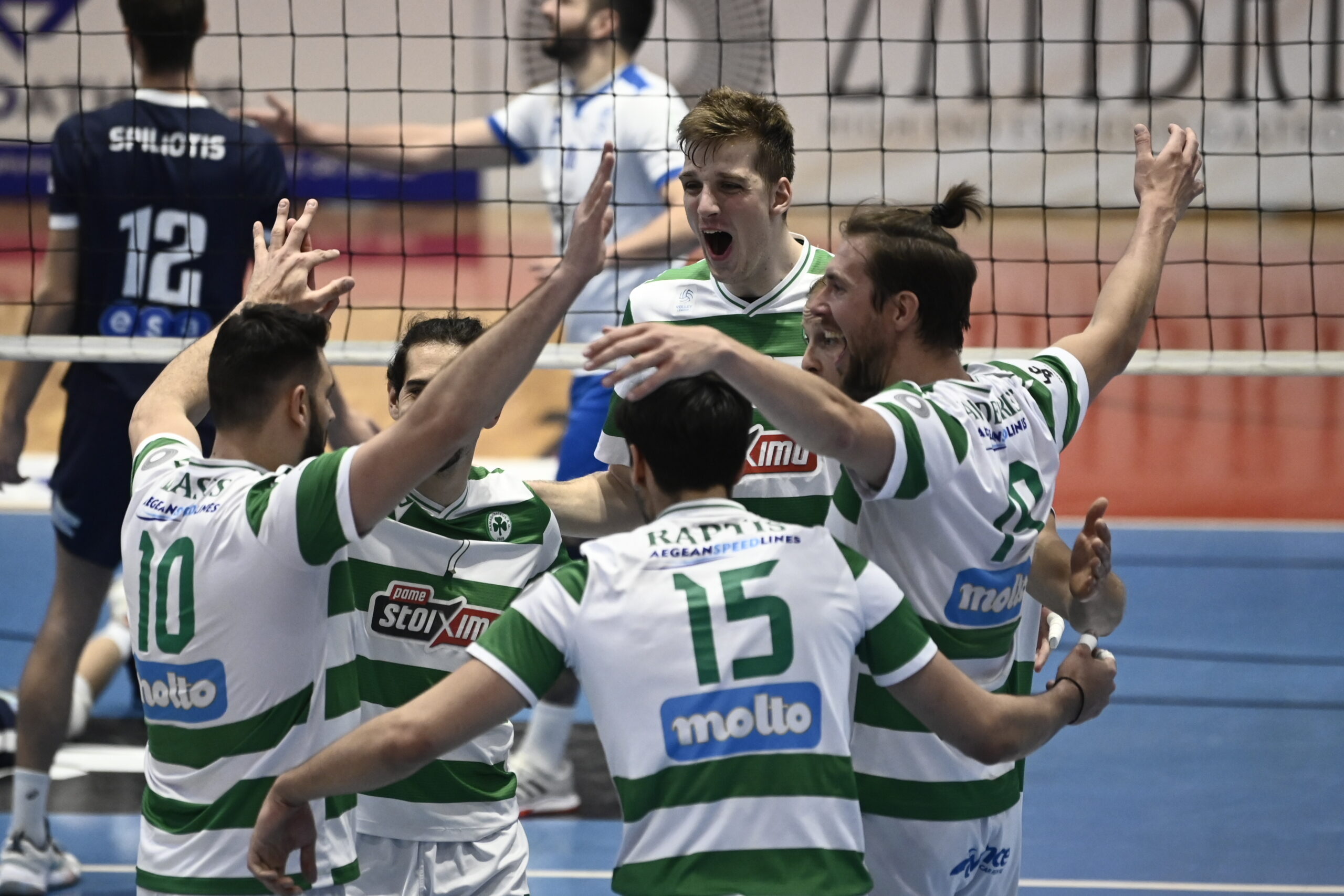 Η ομάδα του κόουτς Ανδρεόπουλου δυσκολεύτηκε μόνο στο πρώτο σετ το οποίο κατέκτησε με 23-25. Η συνέχεια ήταν πιο εύκολη για το «τριφύλλι» αφού πήρε τα επόμενα σετ με 16-25 και 16-25.