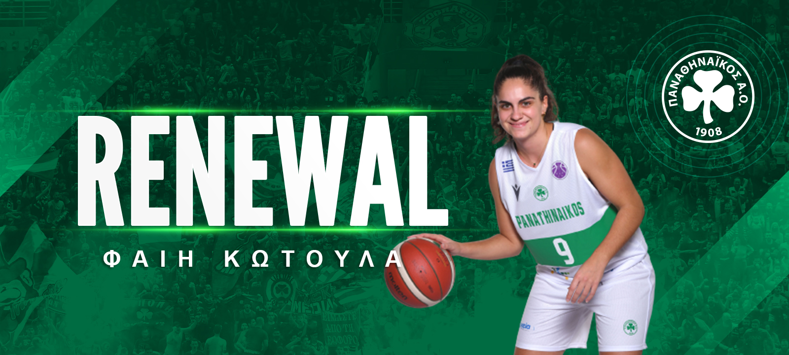 Ο Παναθηναϊκός Αθλητικός Όμιλος ανακοινώνει την ανανέωση της συνεργασίας του με τη Φαίη Κωτούλα για το γυναικείο τμήμα μπάσκετ, για την αγωνιστική σεζόν 2022-2023.