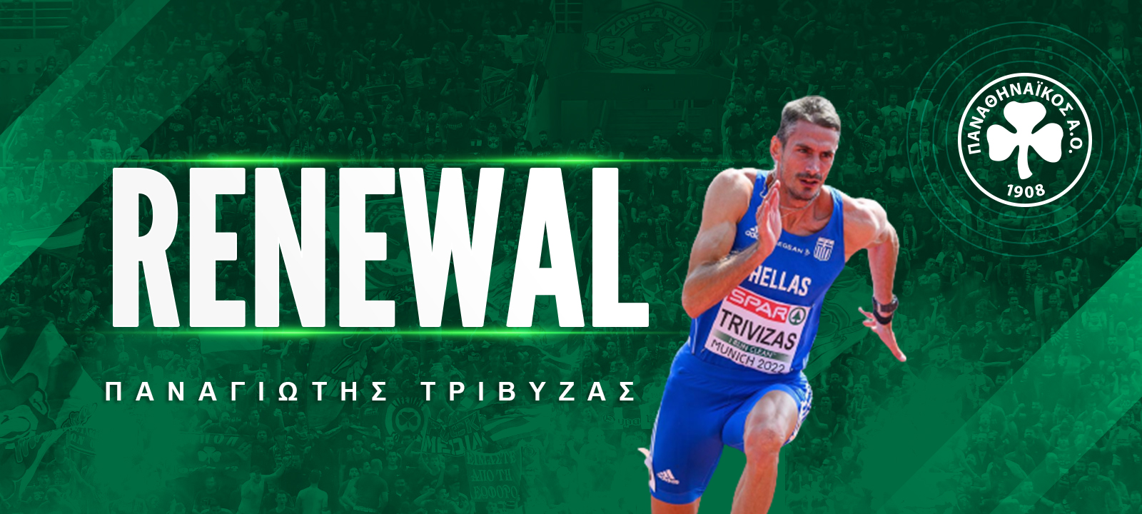 Ο Παναθηναϊκός Αθλητικός Όμιλος ανακοινώνει την ανανέωση της συνεργασίας του με τον Παναγιώτη Τριβυζά για το τμήμα στίβου, για την αγωνιστική σεζόν 2022-23.