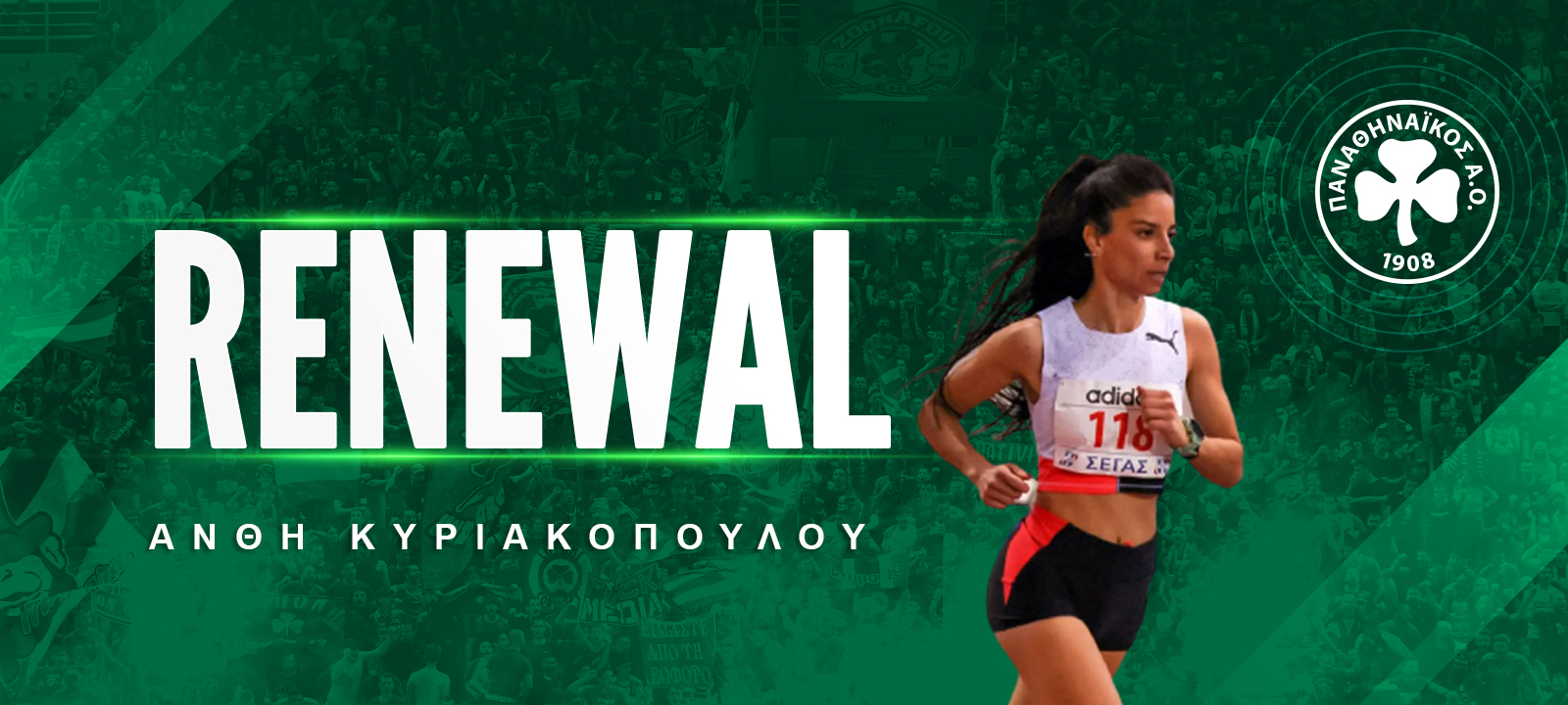 Ο Παναθηναϊκός Αθλητικός Όμιλος ανακοινώνει την ανανέωση της συνεργασίας του με την Ανθή Κοραϊνη Κυριακοπούλου για το τμήμα στίβου, για την αγωνιστική σεζόν 2022-2023.