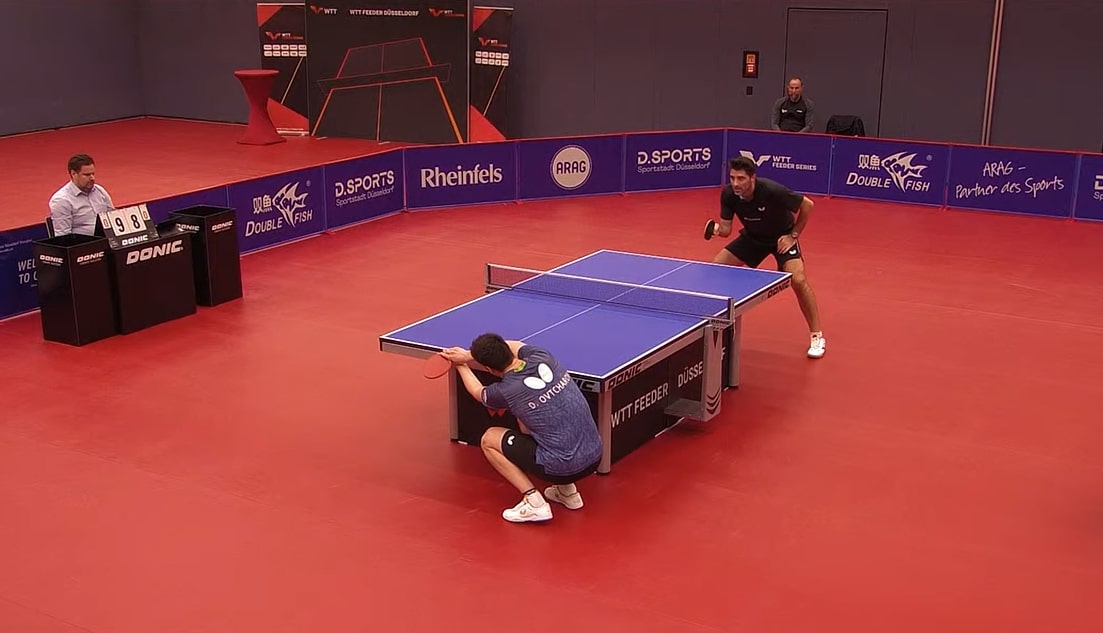 Δυστυχώς η συνέχεια δεν ήταν ανάλογη. Όχι γιατί ο Έλληνας πρωταθλητής υστέρησε ή δεν έδειξε μεγάλες αντοχές, αλλά γιατί ο Ολυμπιονίκης, δοκιμασμένος και στο Ντίσελντορφ στο να επιστρέφει από πολύ δύσκολες καταστάσεις (πολύ χαρακτηριστικό παράδειγμα ότι στον 2ο γύρο είχε βρεθεί να χάνει με 3-1 σετ από τον Μολδαβό Βλάντισλαβ Ούρσου…) έβγαλε σπιν σε πολύ δύσκολα σημεία και δεν έκανε λάθη. Στο καθοριστικό 7ο σετ άρχισε με 5-0 μπροστά και ουσιαστικά εκεί είχε διαμορφώσει οριστικά τα πράγματα υπέρ του (8-11, 11-8, 5-11, 11-7, 12-10, 7-11, 2-11).