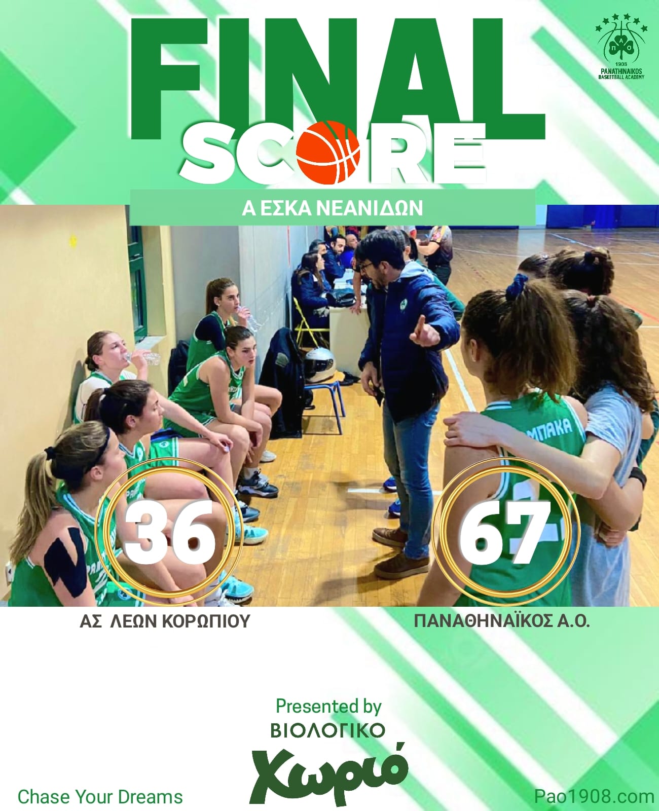 Εκτός έδρας νίκη για τις Νεάνιδες μας με 36-67 τον Λέων Κορωπίου για το Πρωτάθλημα της Α ΕΣΚΑ.