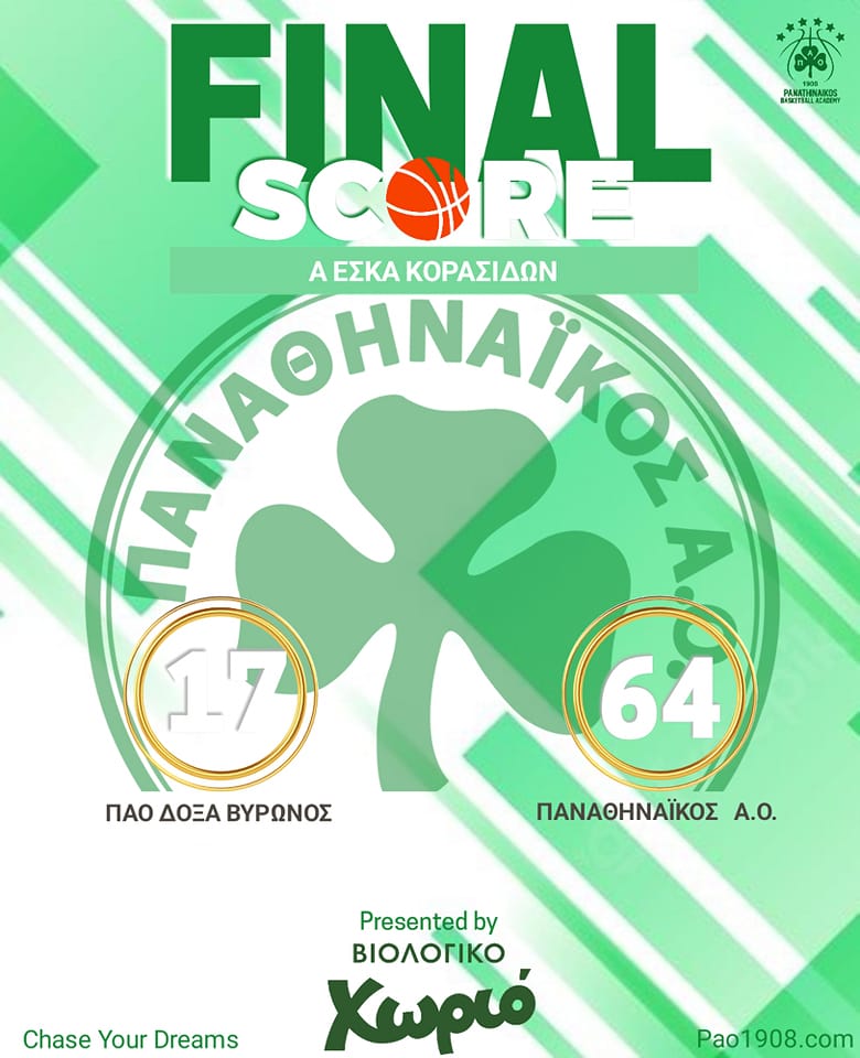 Εκτός έδρας νίκη για τις Κορασίδες του Παναθηναϊκού για το πρωτάθλημα της Α ΕΣΚΑ κόντρα στη Δόξα Βύρωνα με 17-64.