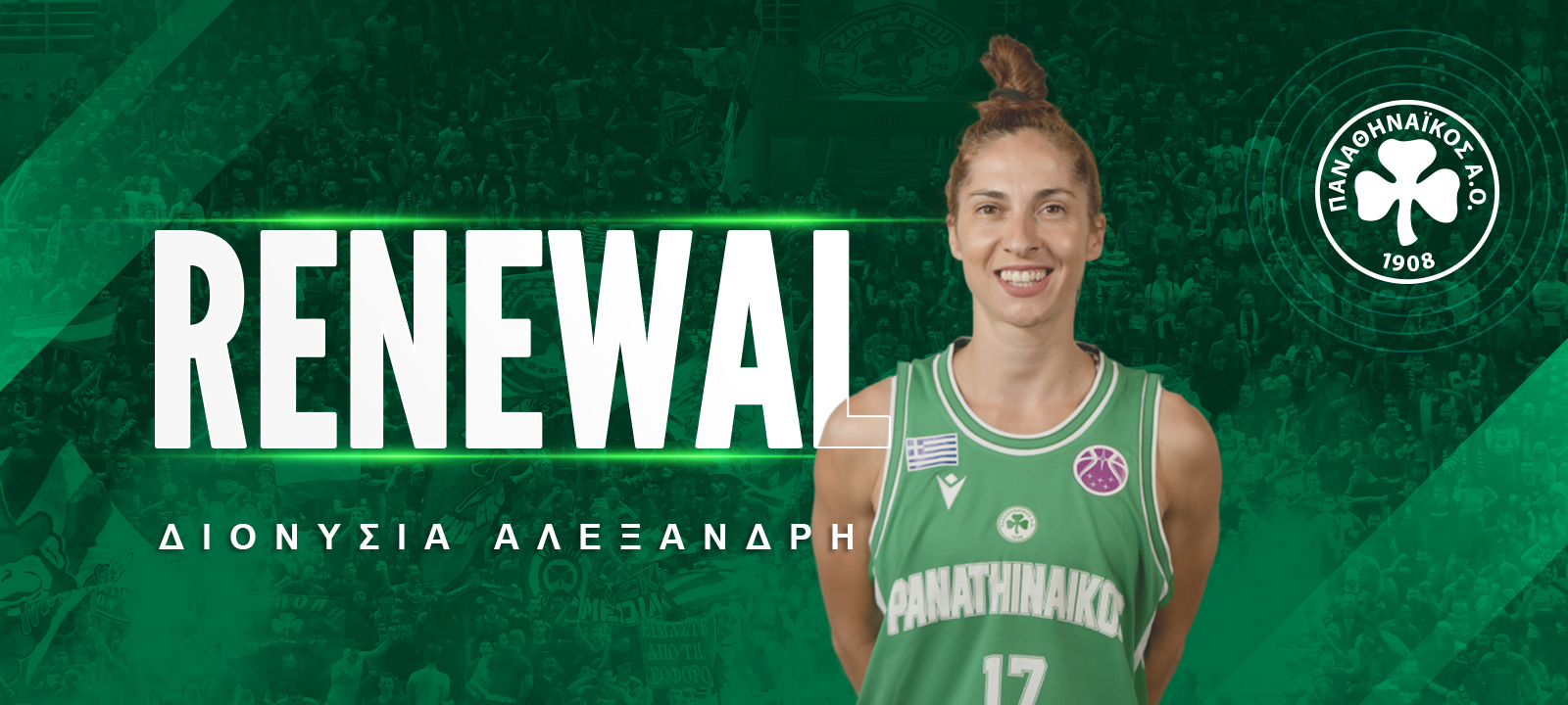 Ο Παναθηναϊκός Αθλητικός Όμιλος ανακοινώνει την ανανέωση της συνεργασίας του με τη Διονυσία Αλεξανδρή μέχρι το 2025 για το γυναικείο τμήμα μπάσκετ.