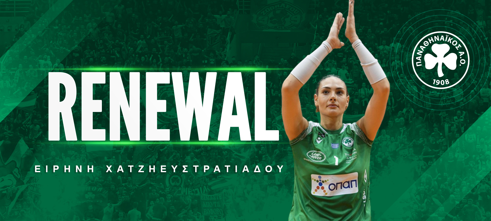 Ο Παναθηναϊκός Αθλητικός Όμιλος ανακοινώνει την ανανέωση της συνεργασίας του με την Ειρήνη Χατζηευστρατιάδου για το γυναικείο τμήμα βόλεϊ, για την αγωνιστική σεζόν 2023-24.