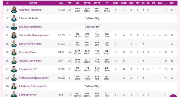 Σημαντικές ήταν οι προσθήκες τις Βίτολα με 14 πόντους αλλά και της Πρινς με 12 πόντους που έβαλαν καθοριστικά καλάθια.
