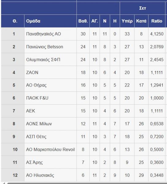 Ο Παναθηναϊκός είναι πρώτος με 30 βαθμούς ενώ ακολουθούν Πανιώνιος και Ολυμπιακός με 24 και τις «ερυθρόλευκες» ένα ματς λιγότερο.
