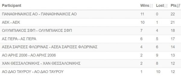 Ο Παναθηναϊκός έκανε το 11/11 και συνεχίζει πρώτος και αήττητος με 22 βαθμούς. Για το «τριφύλλι» αγωνίστηκαν οι Τόλιου, Γερασιμάτου και Τοφάντ υπό τις οδηγίες του προπονητή Νίκου Ζέρβα.