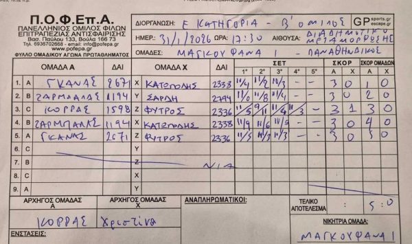 Η ομάδα πινγκ πονγκ ΑμεΑ του Παναθηναϊκού αγωνίστηκε κόντρα στη Μαγκουφάνα για το πρωτάθλημα της ΠΟΦΕΠΑ.