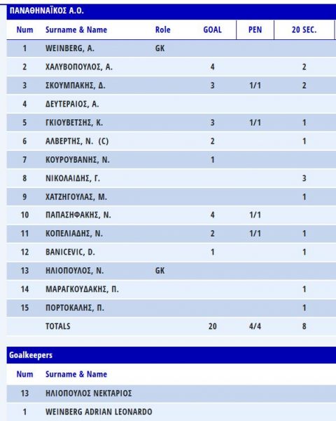 Αναλυτικά τα οκτάλεπτα του αγώνα: 0-6, 0-5, 1-6 και 2-3 ενώ αξίζει να σημειωθεί ότι από πλευράς Παναθηναϊκού δεν αγωνίστηκε ο Παπανικολάου.