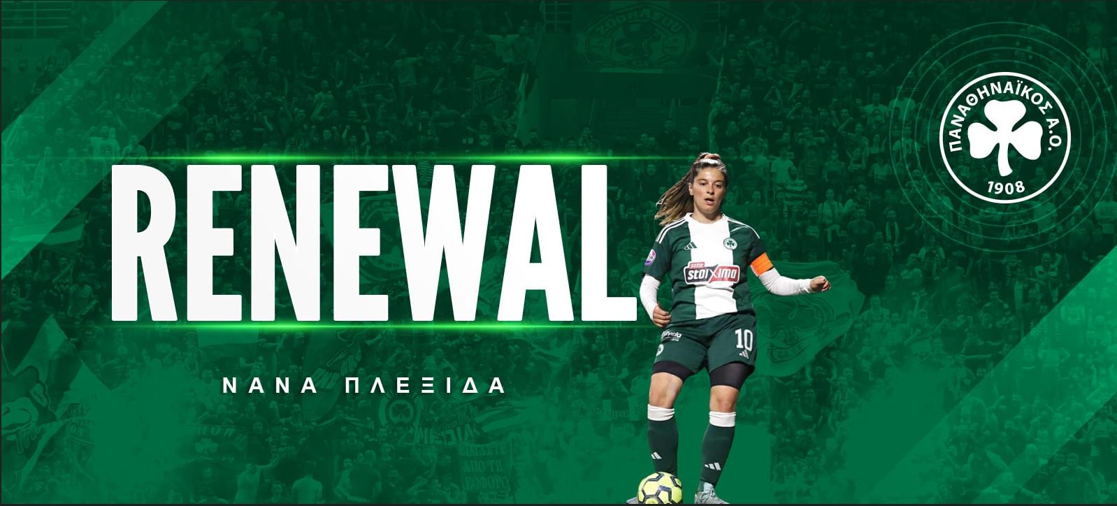 Κομβική ανανέωση για τον Παναθηναϊκό, καθώς η αρχηγός του, Νανά Πλεξίδα, θα φοράει και φέτος τα ένδοξα χρώματα του Συλλόγου.