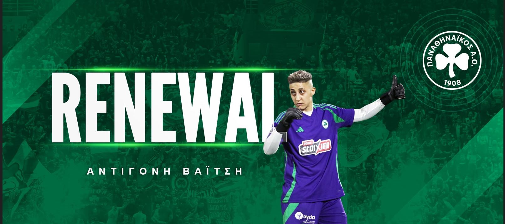 Σπουδαία ανανέωση για το «τριφύλλι» καθώς κράτησε και φέτος κάτω από τα γκολπόστ την Αντογόνη Βαΐτση.