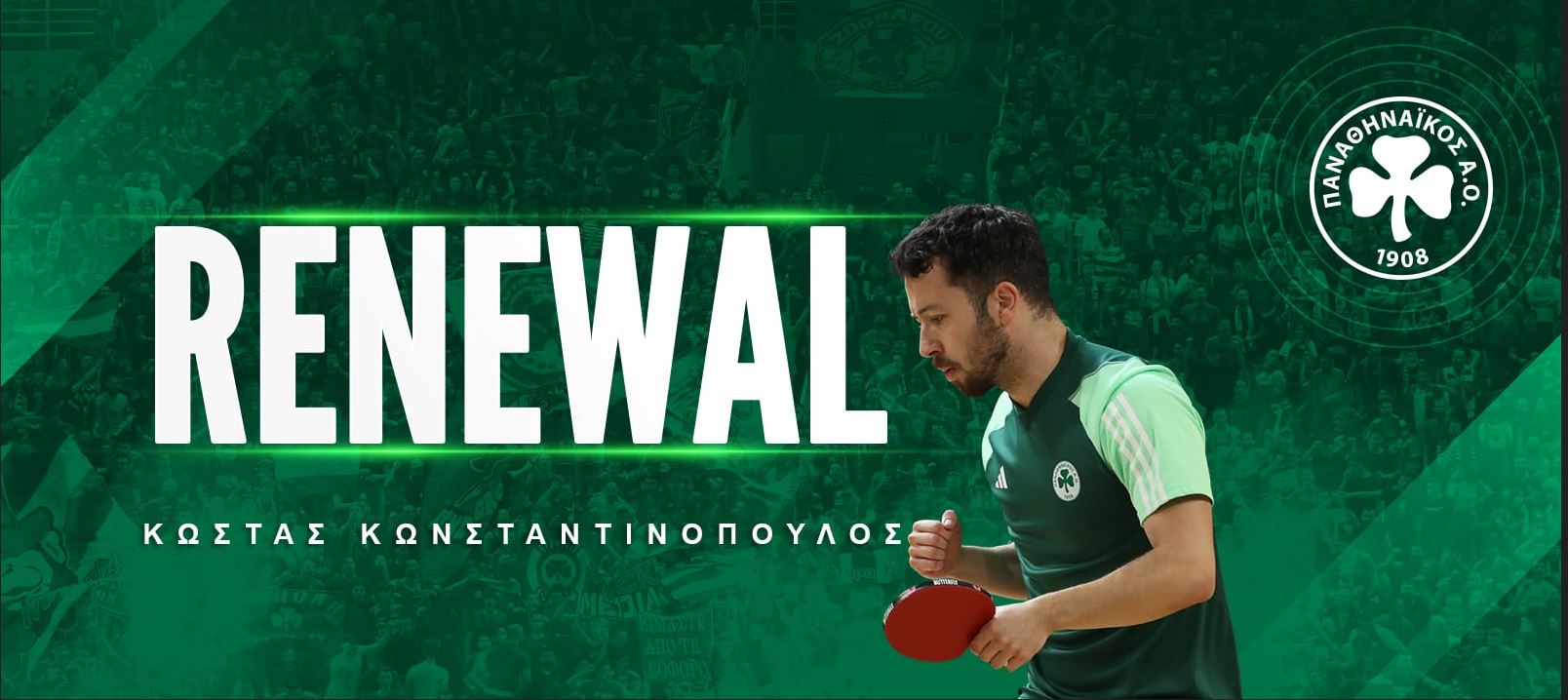 Ο Παναθηναϊκός Αθλητικός Όμιλος ανακοινώνει την ανανέωση της συνεργασίας του με τον Κώστα Κωνσταντινόπουλο στο τμήμα πινγκ πονγκ για την αγωνιστική σεζόν 2025-2026.